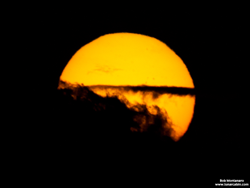 The Sun breaks out of the clouds seen as black wisps against the Sun’s bright face. The eclipse photos were taken through a solar filter used for astronomical viewing that blocks out all but 1/1000th of 1% of the Sun’s light making for safe viewing of the event.