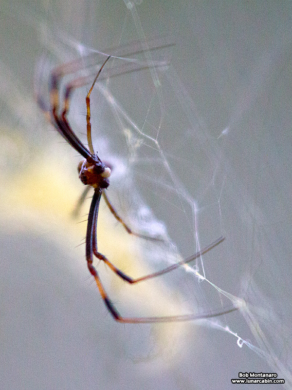 Sunday morning saw the Golden Silk Spider couple living behind the office at ORCA in seemingly perfect health on a large, well-maintained web. A day later things are drastically different. The web is a wreck with large, ragged holes in it. The female is gone with only the small male present. Were they the victims of foul play? Did a predator swoop in and grab the female away? Or is she off laying her eggs on a nearby tree? For now here are two photos of the forlorn male taken this afternoon on the remains of the web.