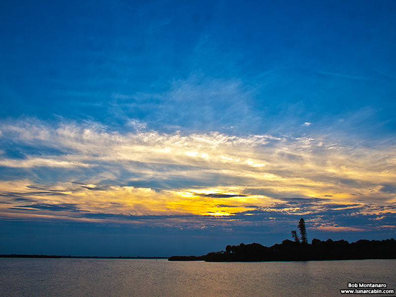 I missed some pretty dramatic sunsets over the last few weeks so when my schedule finally allowed me an opportunity to shoot today’s sunset there were none of the fiery colors everyone has been talking about. Still, it was a pretty sight in this view looking across the Indian River Lagoon and Pelican Island National Wildlife Refuge toward Sebastian unseen on the western shore.