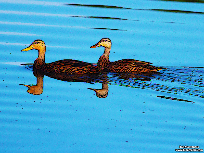 Mottled Duck bird art – from a pair at the Indian River Club slowly paddling by as they kept a close watch on us.