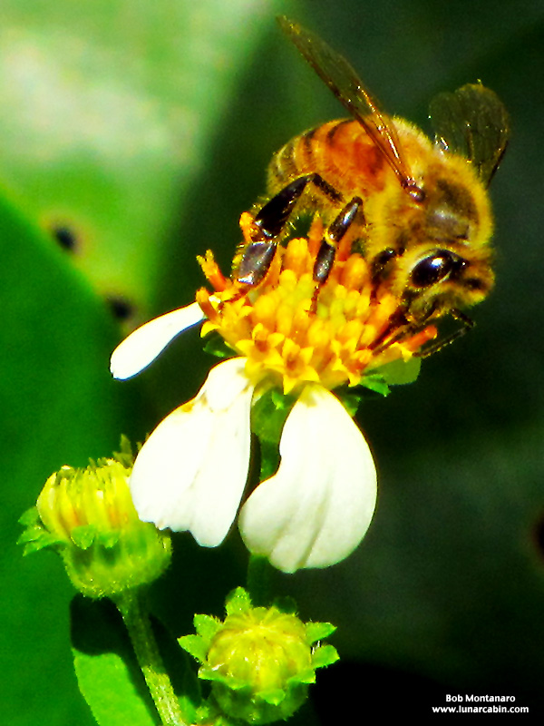 Bee on Common Beggar’s-tick (Bidens alba). I regret now not lugging the macro lens out into the field.