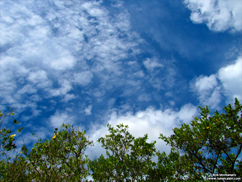 Sky over mangroves along the trail.