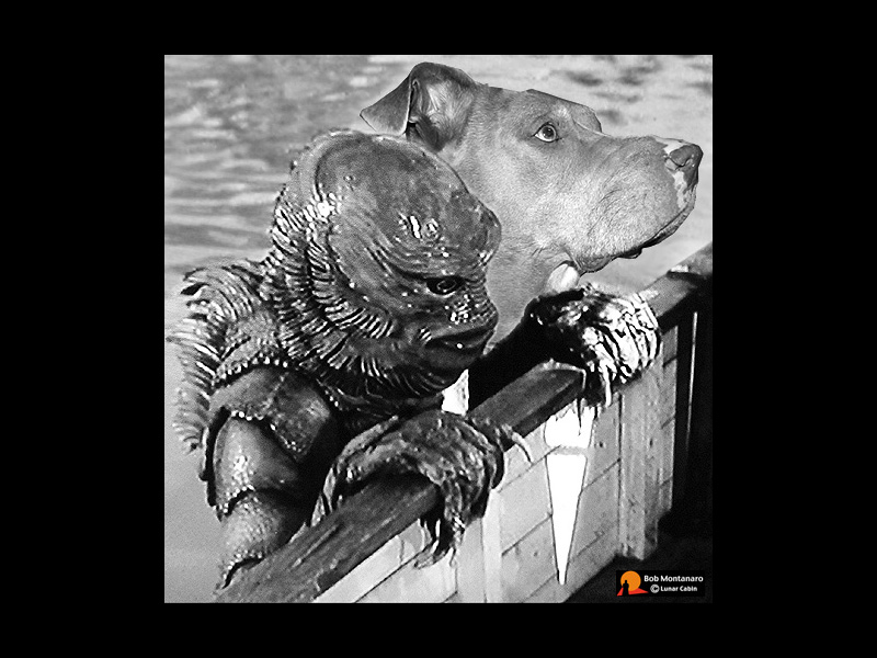 Sam poses with the Creature from the Black Lagoon from the 1954 Universal Studios classic film of the same name.