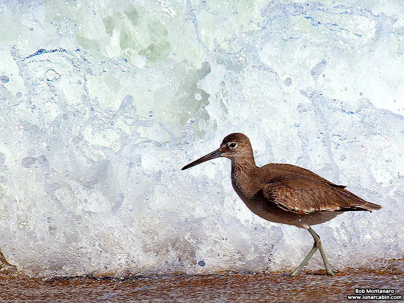 A Willet forages along in the swash zone.