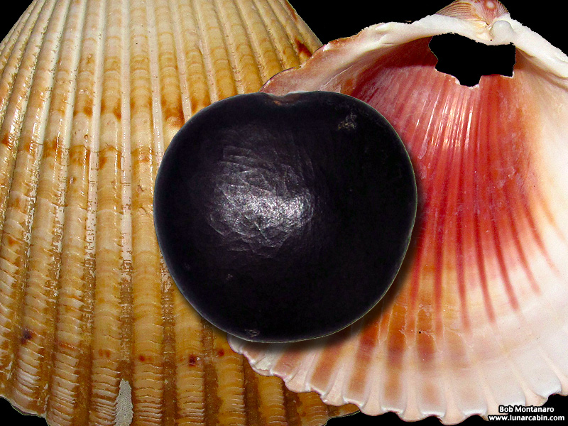 Two beachcombing finds included this shell and a Sea Heart sea bean that most likely originated in a South or Central American jungle years ago before its long sea voyage ended in my possession.