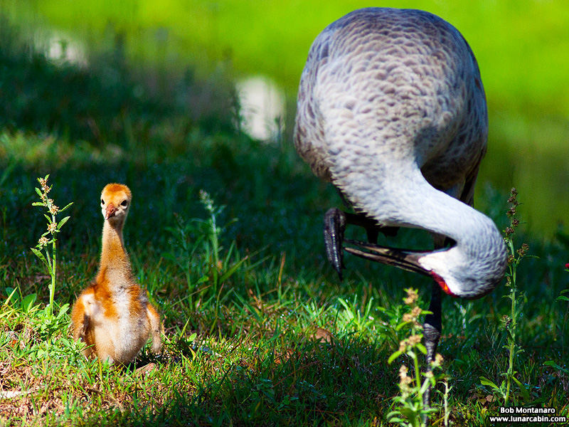 The Sandhill Cranes have a youngster of their own to raise.