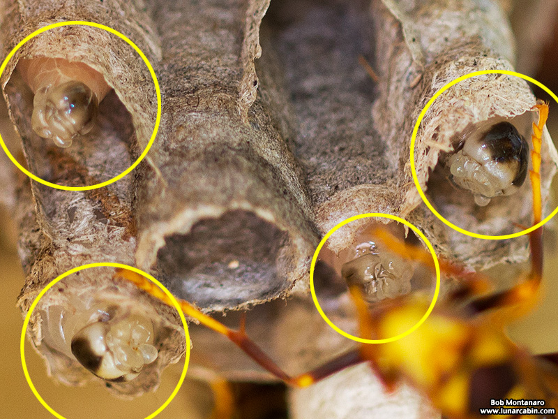 The Paper Wasp nest at Audubon House is coming along nicely with the development of multiple larvae in these images taken over the past week.