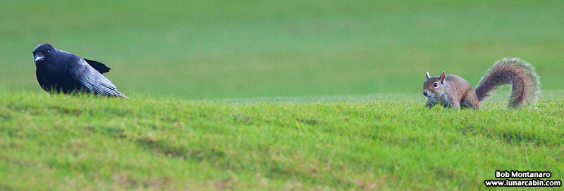 The Fish Crows were having some fun harassing a Squirrel on the golf course.