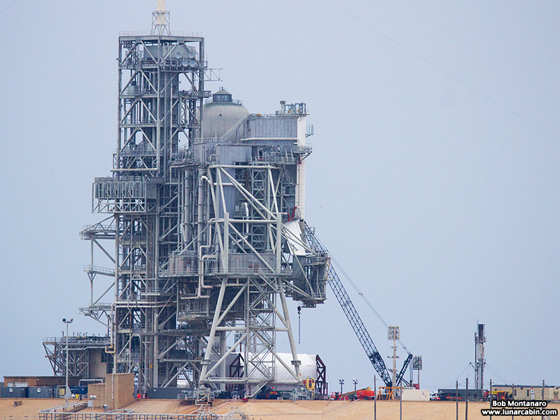 The biggest change so far is the construction of a large hanger straddling the Crawlerway. Falcon 9 rockets will be processed horizontally inside the hanger then move to the pad where they will be lifted vertically for launch.