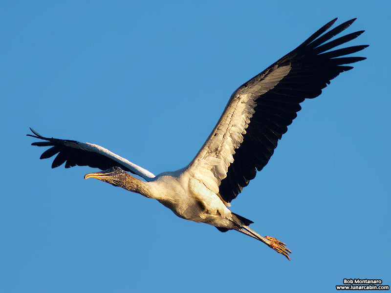 Three photos of Wood Storks (Mycteria americana) caught flying in the early morning light. Though their population is on the precarious side, mainly due to habitat loss, think bulldozers, they are common enough birds to see along Florida’s Indian River Lagoon, especially around Sebastian Inlet State Park where they congregate hoping for handouts from fishermen. The scientific name refers to its large, snout-like bill, Mycteria, and where it is found, americana.