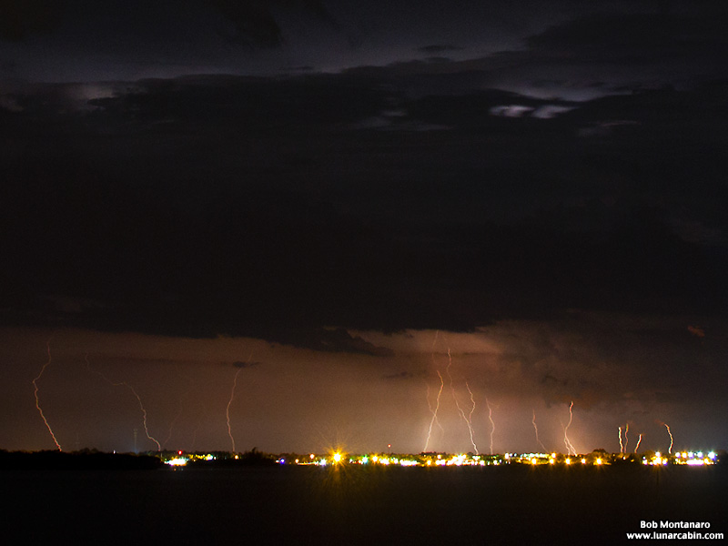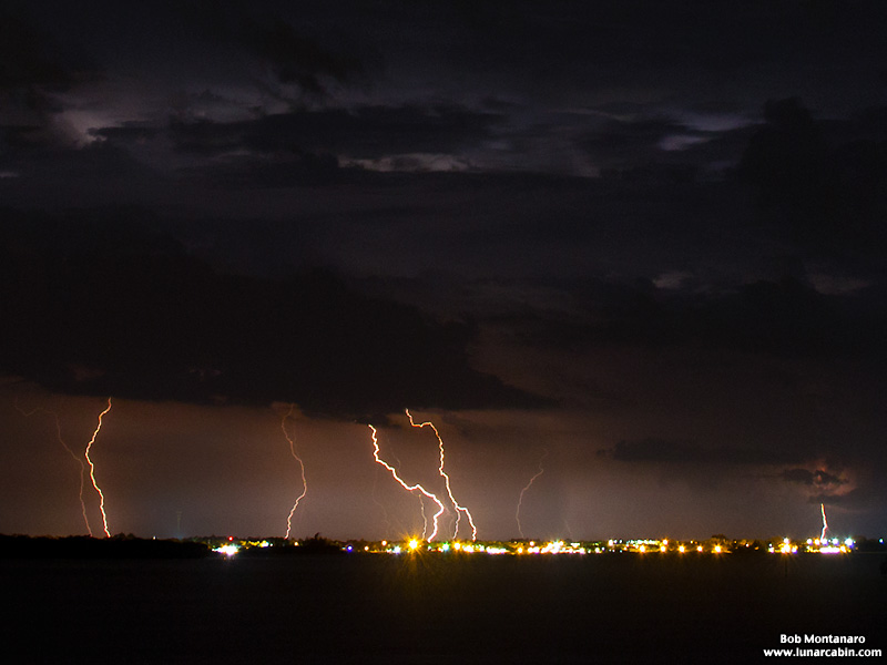 Photos from the lightning storm that pounded Sebastian, Florida during the evening hours of 13 July 2015. This view is looking toward Sebastian across the Indian River Lagoon from the barrier island.