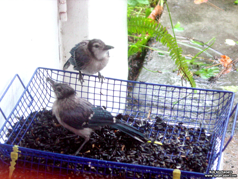 These Blue Jays took cover on my porch where they spent one of the storms in reasonable dry safety. Plus they had all the sunflower seeds they could eat.