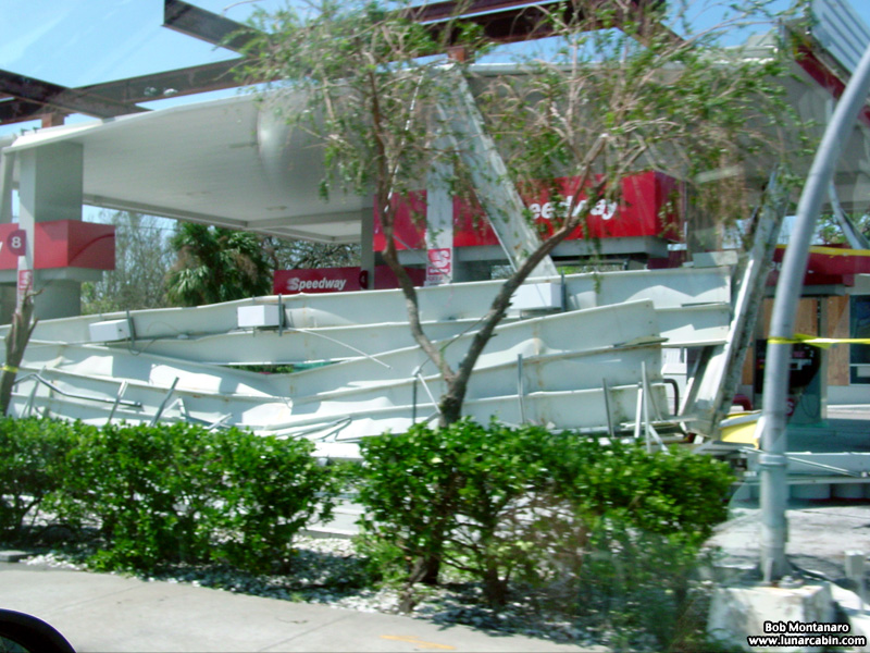 A similar fate was suffered by the Speedway gas station where part of the gas pump roof collapsed into twisted wreckage.