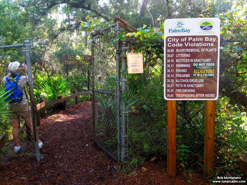 The formidable looking entrance at the trailhead belies the nearby friendly, cracker-style, exhibit-filled, nature center. Sadly, the sign is a too often seen reminder to people not to be stupid.