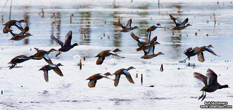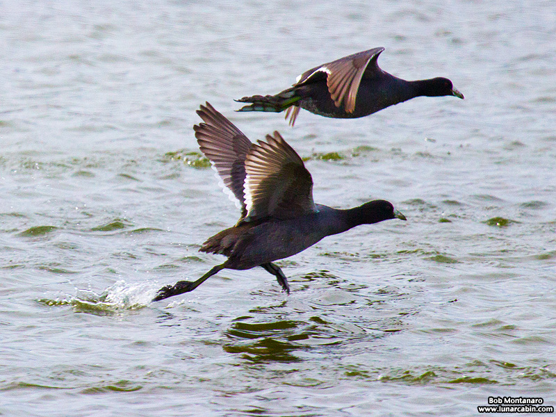 Skittish American Coots make a splashy exit whenever anyone draws too near. They never go very far, though, usually ending up on the other side of the cell they started out in.