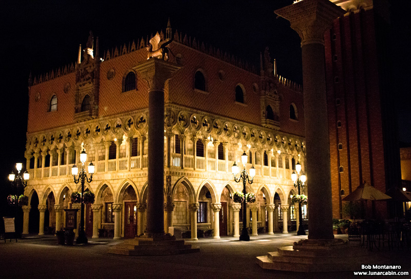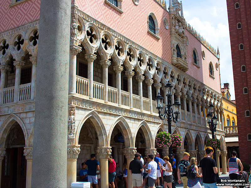 A replica of the Doge’s Palace in Venice where the original began initial construction in the 1300s.