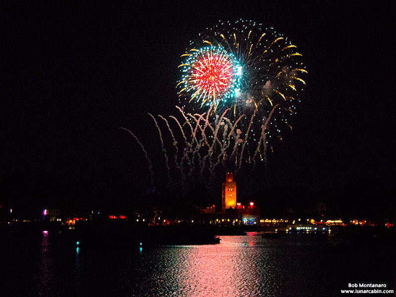 These first few photos are of a short fireworks show earlier in the evening. The tower in the background is the minaret in the Morocco Pavilion.