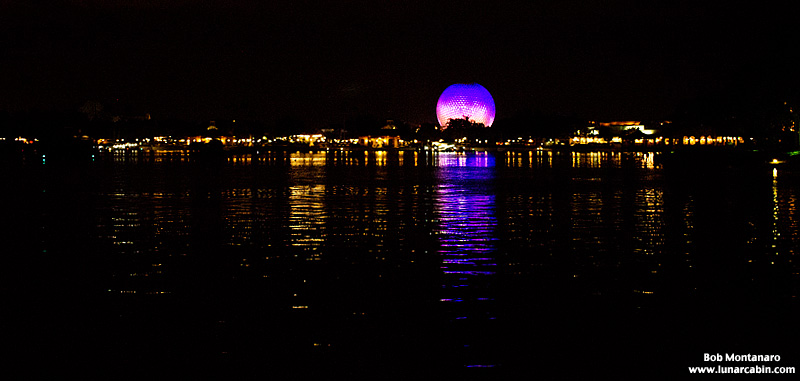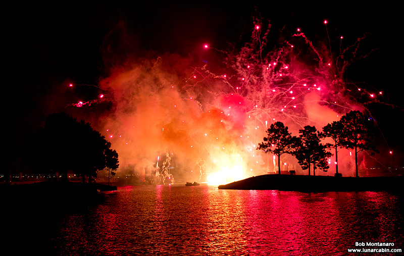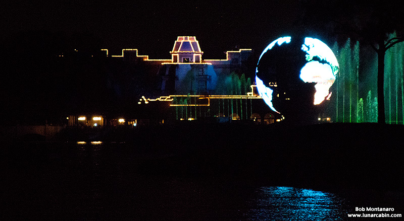 A sampling of images from Disney World’s EPCOT IllumiNations: Reflections of Earth show held at 10:00 p.m. the night we were there. The extravaganza is a multi-media light show that includes fireworks, lasers, water fountains, searchlights, music and narration, a propane-filled barge that explodes balls of flame, and a giant LED-covered globe that can illuminate colors and moving images on the continents. The fireworks shoot from barges brought out into the middle of the World Showcase Lagoon that are all controlled from a room atop the Mexico Pavilion. All of these photos were taken using a handheld camera since a tripod was not an option.