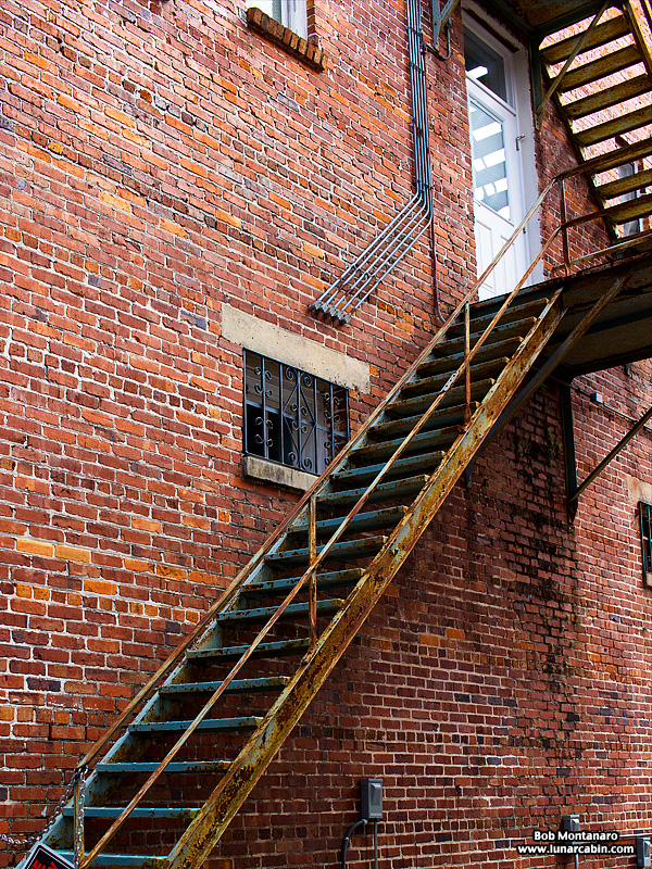 A photographic study of a brick building in downtown Mt. Dora located in a very hilly part of central Florida. According to the City of Mount Dora website, the city sits on a “plateau 184 feet above sea level” hence the Mount part of the name.