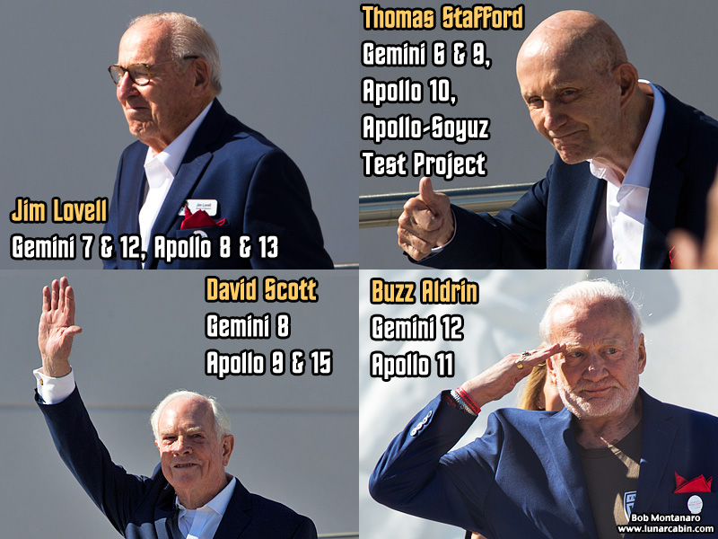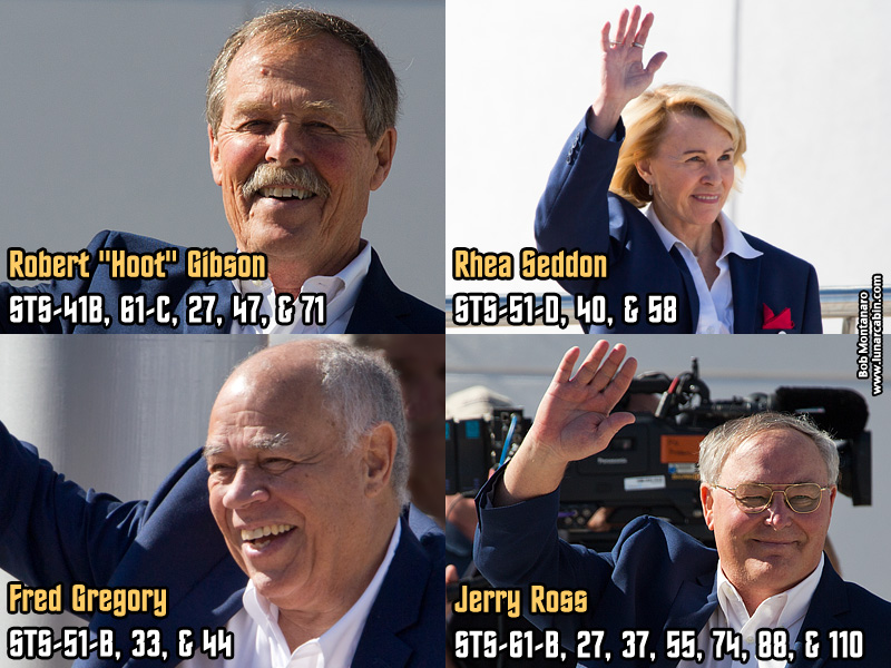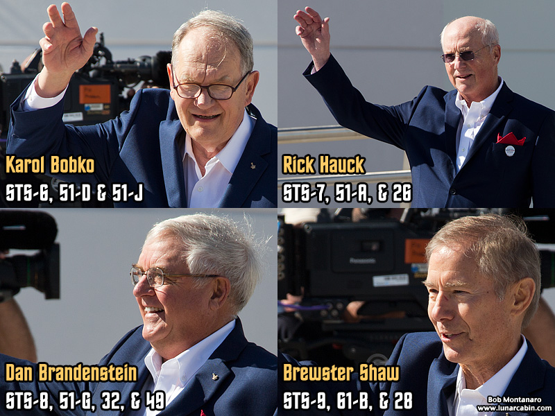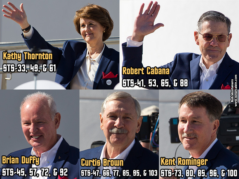 Above, the astronauts come down the entrance ramp waiting to be called out one-by-one to be recognized. Below are the astronauts and their respective missions.