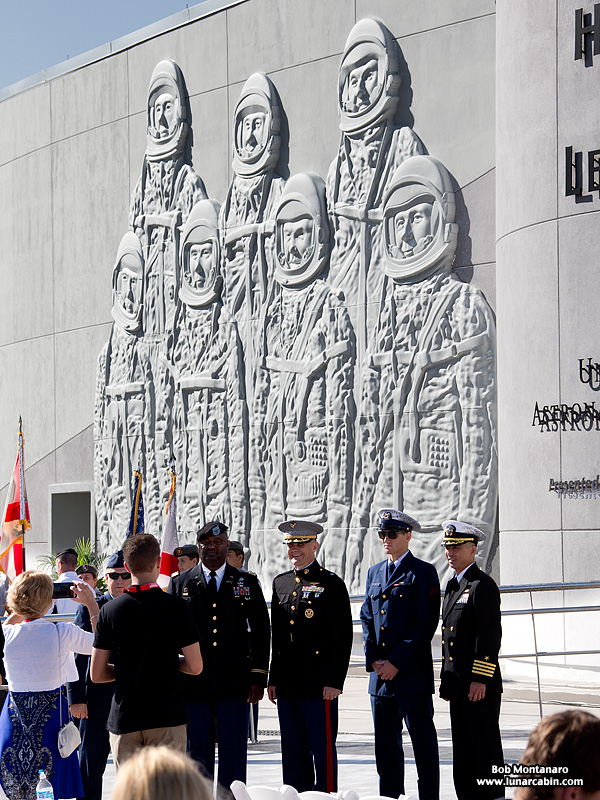 All branches of the military were represented reflecting the same composition found in the NASA Astronaut Corps. On the wall of the Heroes and Legends building is a bas-relief of the original seven Mercury astronauts.