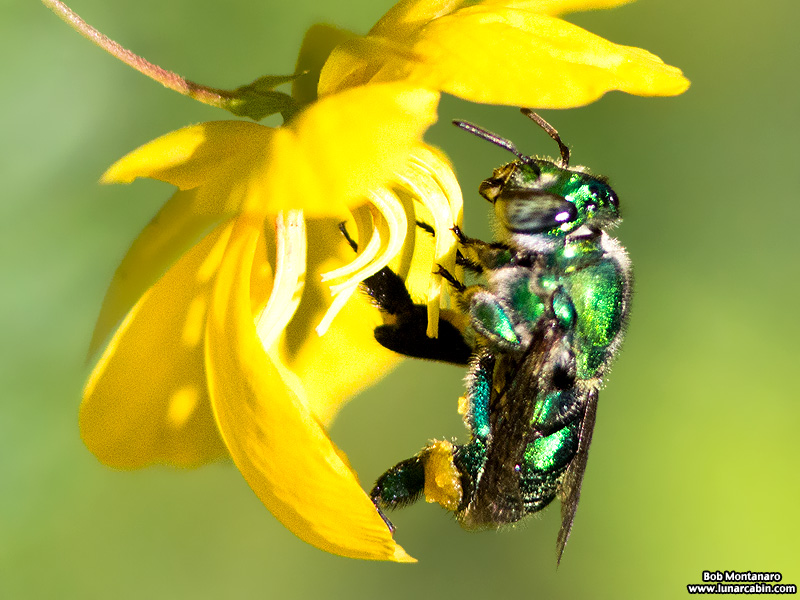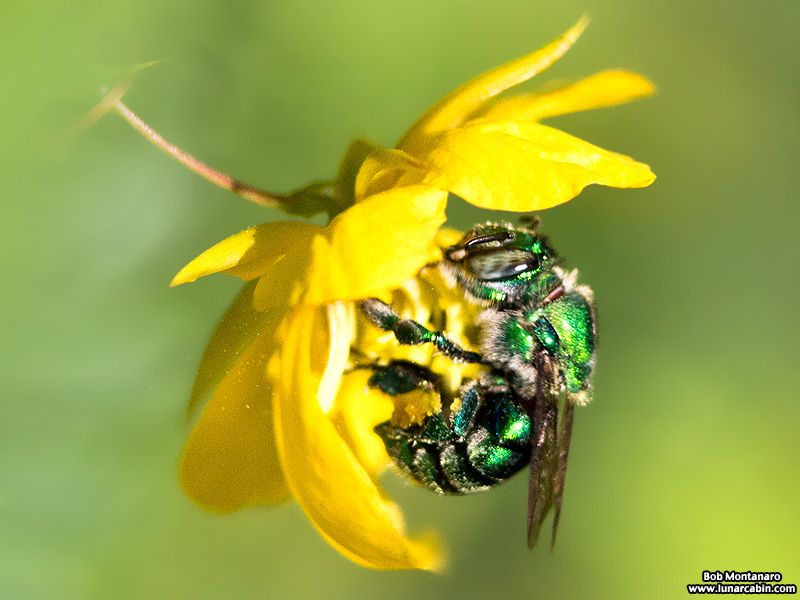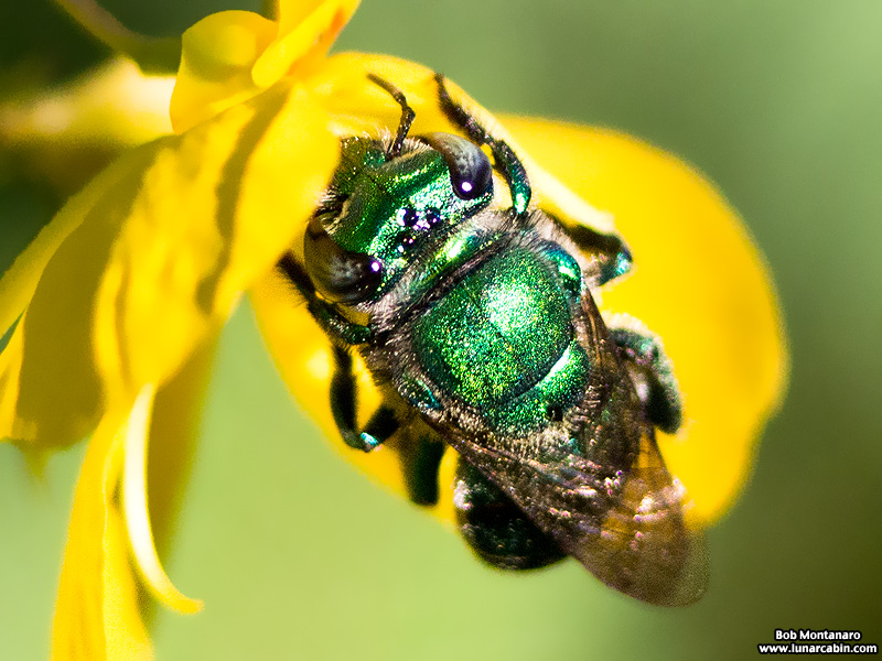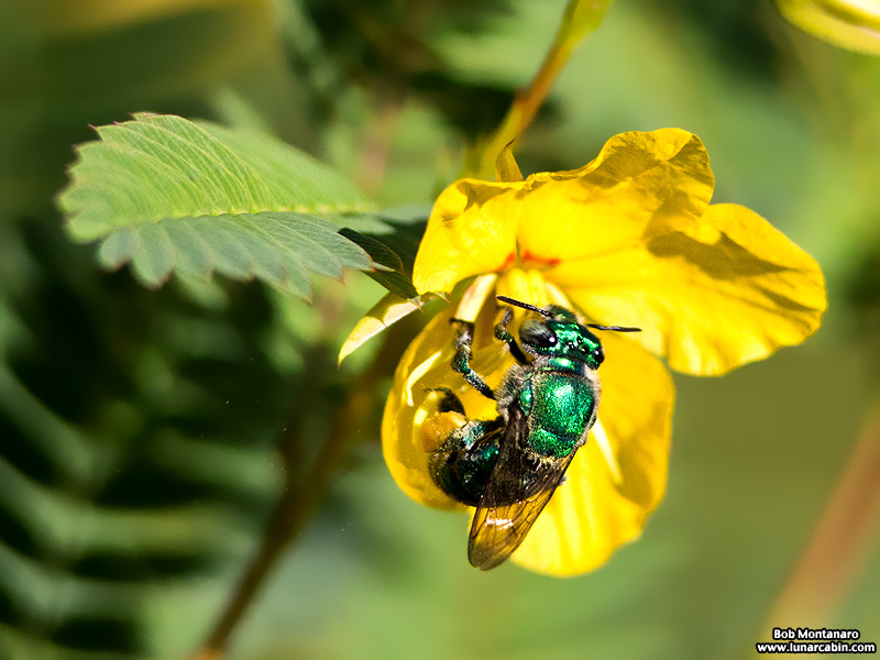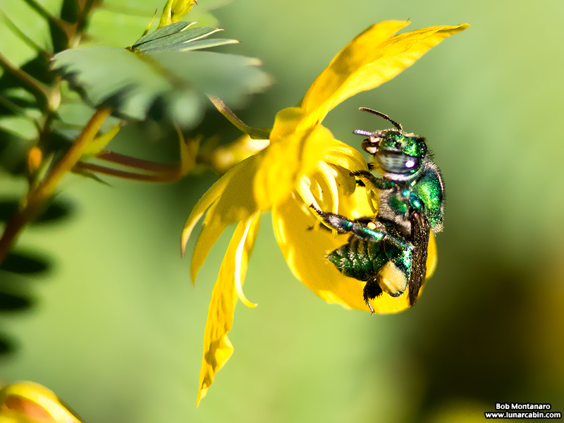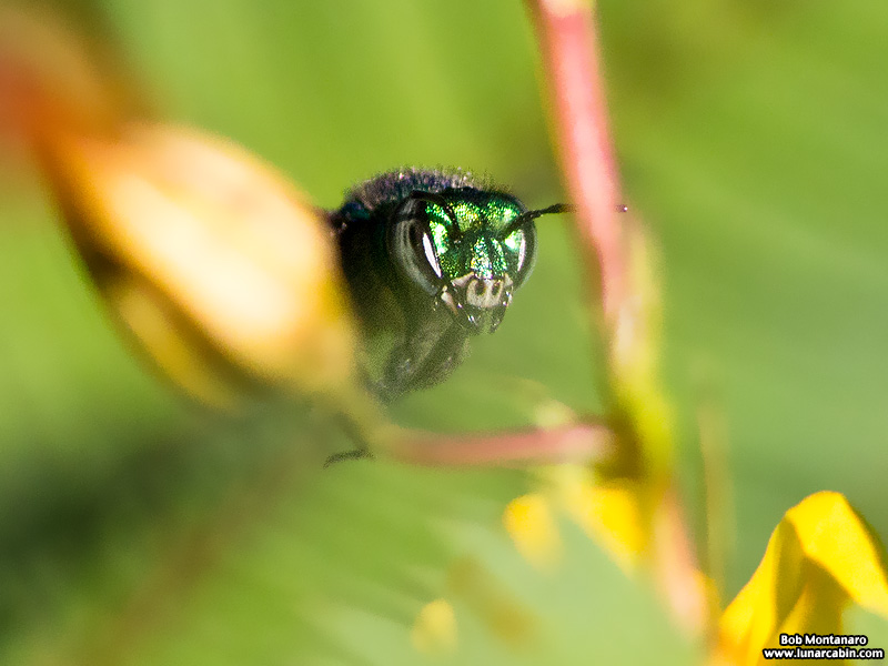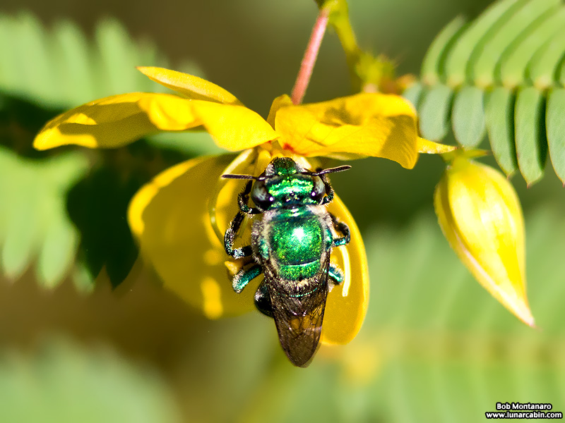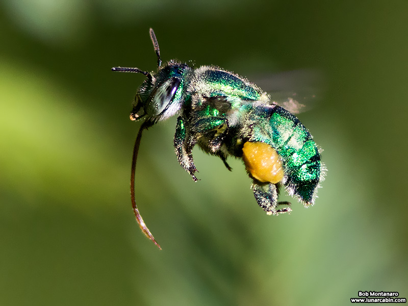 Green Orchid Bees swarmed all over the pollinator garden at Audubon House on Sunday morning. Their eerily, long proboscis dipping into the flowers accompanied by the almost silent buzzing of their beating wings.