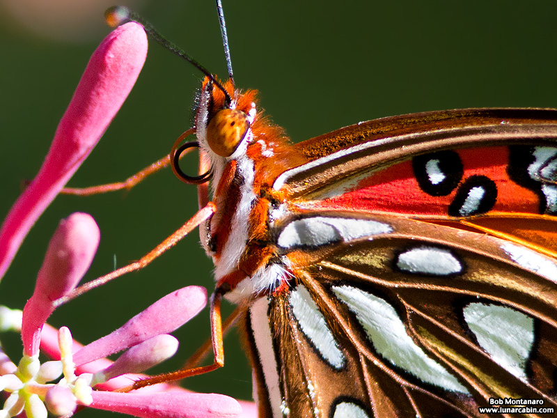 Make them a little bigger and domesticate them and the Gulf Fritillary looks like it would make for a psychedelic furry pet. Note how the proboscis is rolled up and stored away as this Gulf Fritillary strikes a relaxed pose.