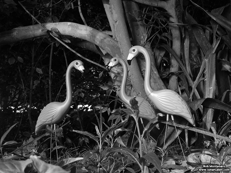 Distinctly pink avifauna that survived Hurricane Irma find a night roost under the sea grapes. These Pink Flamingos are very habitat specific and thrive in a a well landscaped environment although their presence may alarm the fastidious. The bird’s rugged tackiness and artificial plasticity have expanded the bird’s range far beyond Florida yards. Conservation threat: none – except from angry neighbors.