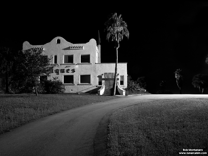 This building constructed in 1926 has undergone many unknown uses to finally end up as an antiques mall, at least in its most recent incarnation. Besides its pleasing if somewhat spooky architecture, its location atop a high and somewhat lonely point on the Florida Ridge north of Fort Pierce provides a commanding view of the area, especially eastward toward the Indian River Lagoon and the Atlantic Ocean. Most likely the building’s best days are behind it given its current boarded up state. From this angle the building hides a little secret that will be revealed in a later post. Nothing to get too excited about.