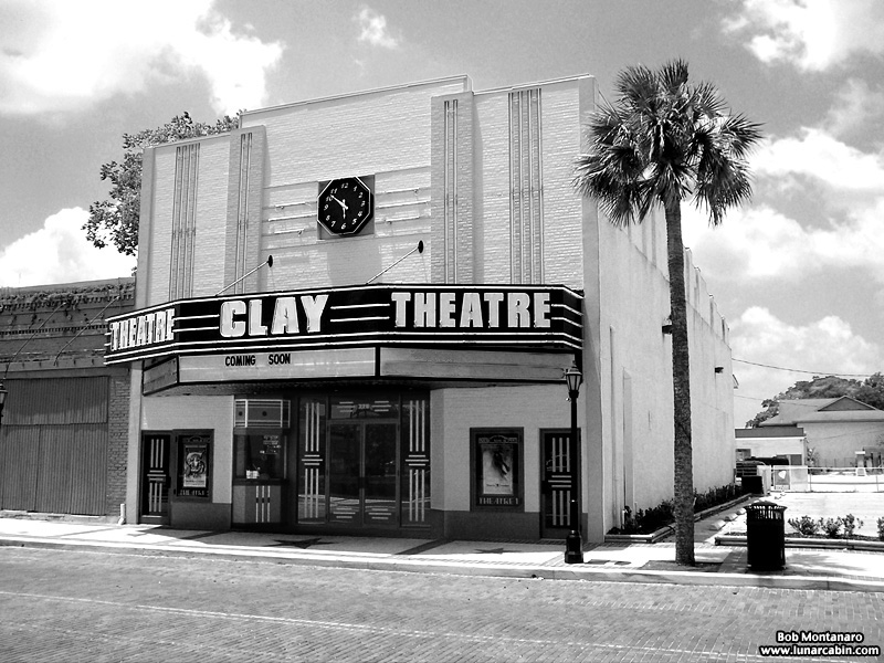 The Clay Theatre, one block from the St. Johns River, in the small town of Green Cove Springs, Florida, sits forlorn and empty these days after closing in 2014. The star set into the cement out front lists it as The Palace Opera House & Motion Picture Show Circa 1916, then becoming the Clay Theater in 1937 to exclusively show movies.