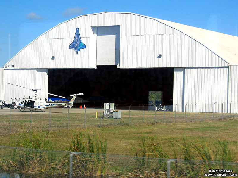 The Reusable Launch Vehicle Hanger, located at the south end of the Shuttle Landing Facility, is used for a diverse number of activities, including storage of NASA helicopters used at Kennedy Space Center as seen here. One of the buildings most memorable uses was the collection and reconstruction of debris from the Space Shuttle Columbia during the accident investigation. The event is commemorated with the STS-107 logo on the building. Space Florida currently manages the facility under contract with NASA.