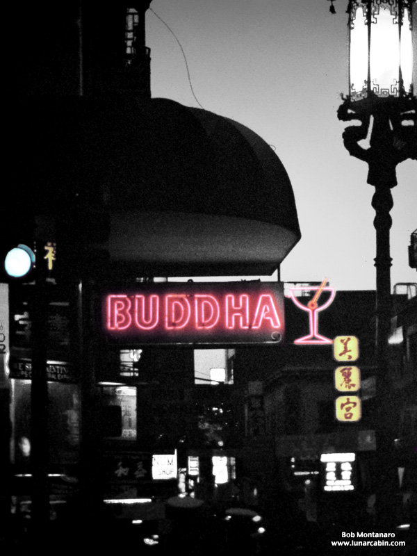 The old Buddha bar in San Francisco’s Chinatown taken decades ago before the war. At one time an out-of-the-way hole-in-the-wall place to spend a day drinking. I see online that is has gone fairly upscale. Actually, the inside is unrecognizable from the way I remember it. A massive change from the true, rundown dive it used to be full of beat characters amidst no money ambiance. I guess they threw away everything but the neon sign. Good for them. From the slide archive.