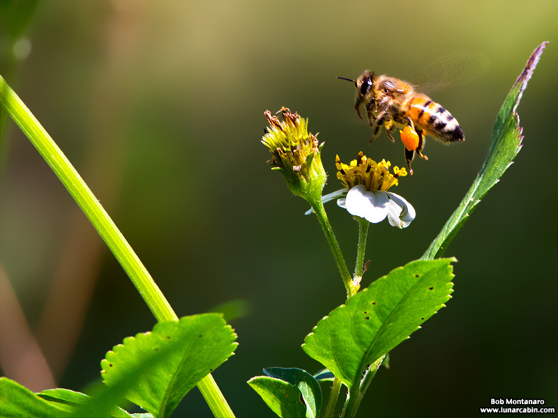 A bee, slightly blurred from her unexpectedly fast liftoff, works the flowers along the side of Oslo Road in the Oslo Riverfront Conservation Area. Note the large mass of orange pollen affixed to the pollen basket alongside her leg. As I later learned, this is called her corbicula for all those with a more formal entomology bent. She will carry the full baskets back to the hive where the pollen will be used to make bee bread to feed bee larvae and workers. There is always something going on behind the scenes in nature.