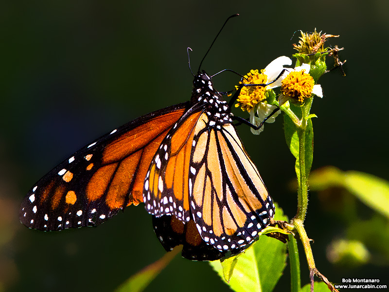 A Monarch butterfly slurps up nectar through its proboscis from the flowers along Oslo Road in the Oslo Riverfront Conservation Area. The white spots on its body and head are quite appealing.