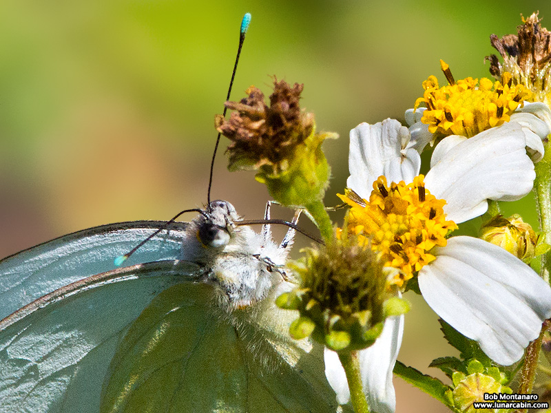 Another shot of the same Great Southern White seen in the previous post giving another view of the bright turquoise clubs at the end of the antennas. Note its proboscis is unleashed as the butterfly probes the flowers for nectar.