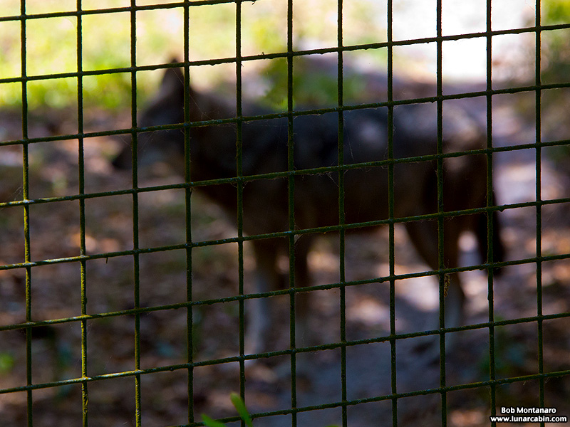 Home to the southeastern United States, the Red Wolf is an anachronism in the modern age. Its survival these days is up to humans who, up to now, destroy its habitats and hunt it for sport. This Red Wolf at the Brevard Zoo did not seem too happy as it trotted endlessly around the borders of its spacious pen, pausing briefly to look around before starting off again. Maybe it is just unsure what to think when people are looking at it.