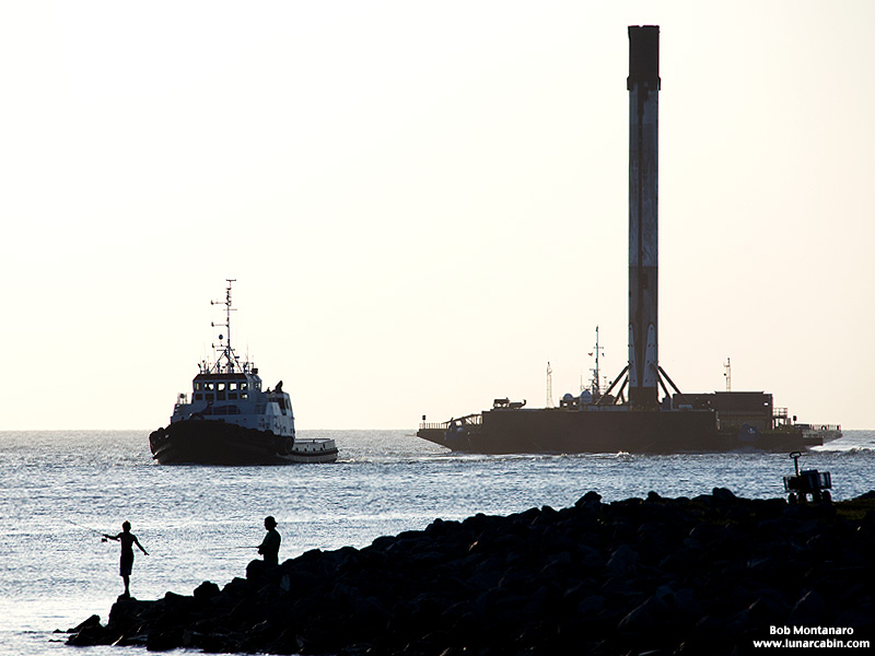 The SpaceX Falcon 9 Block 5 booster that launched Telstar 19 into orbit and made a successful landing on the Of Course I Still Love You droneship returned to Port Canaveral just after dawn on 25 July 2018. Click to view my gallery of images of the booster’s return to Port.