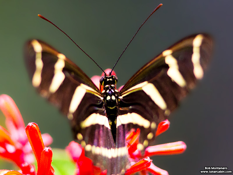 Zebra Longwing butterfly, designated the state butterfly of Florida in 1996, in the Audubon House pollinator garden at the Oslo Riverfront Conservation Area (ORCA).