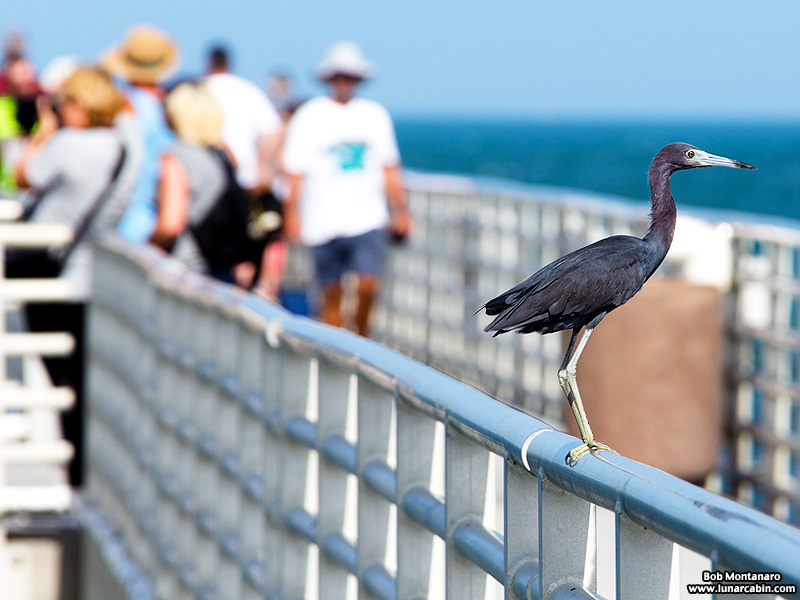 A Little Blue Heron appeared on the jetty at Jetty Park as a crowd of reporters and space fans waited for the return to Port Canaveral of the “Of Course I Still Love You” droneship bearing the SpaceX Falcon 9 first stage booster that had launched the Merah Putih satellite only a few days ago. More photos of the booster return to follow.