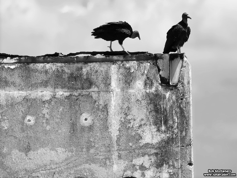 Black Vultures atop some of the concrete remains of Launch Complex 34 at Cape Canaveral Air Force Station.