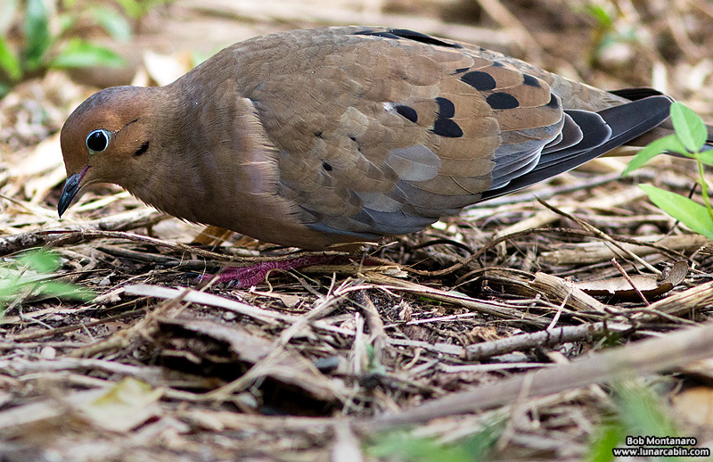 A Mourning Dove forages in the woods at the Oslo Riverfront Conservation Area.