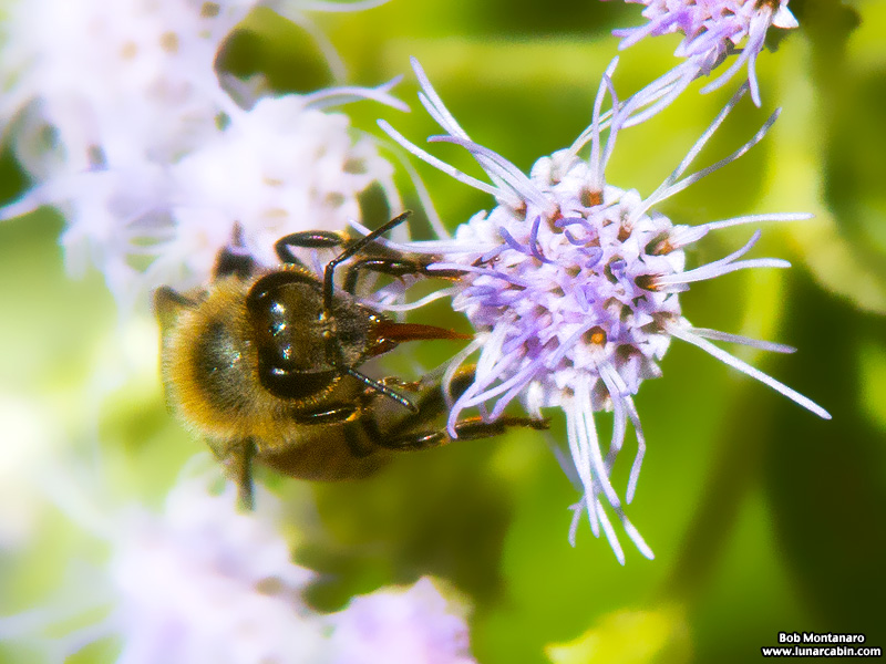 A Honey Bee uses its proboscis to slurp up nectar from this flower at the Oslo Riverfront Conservation Area.