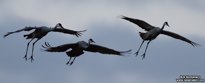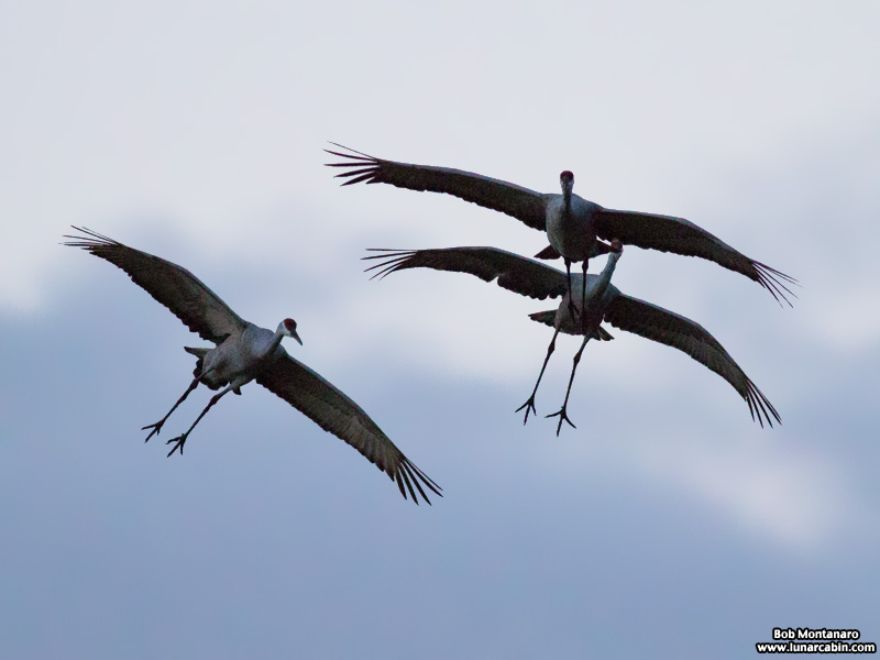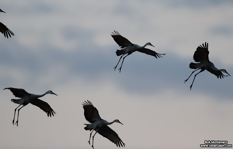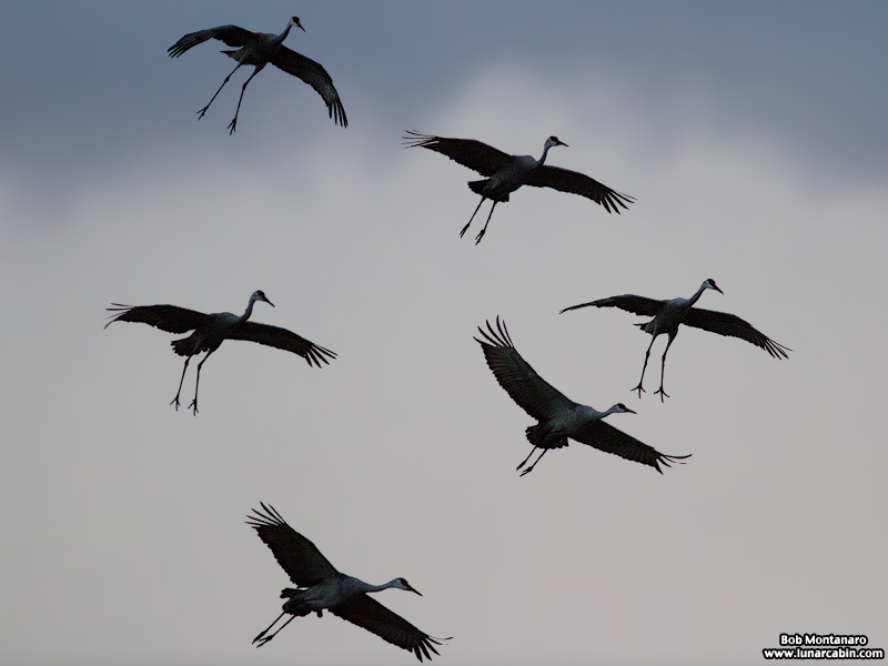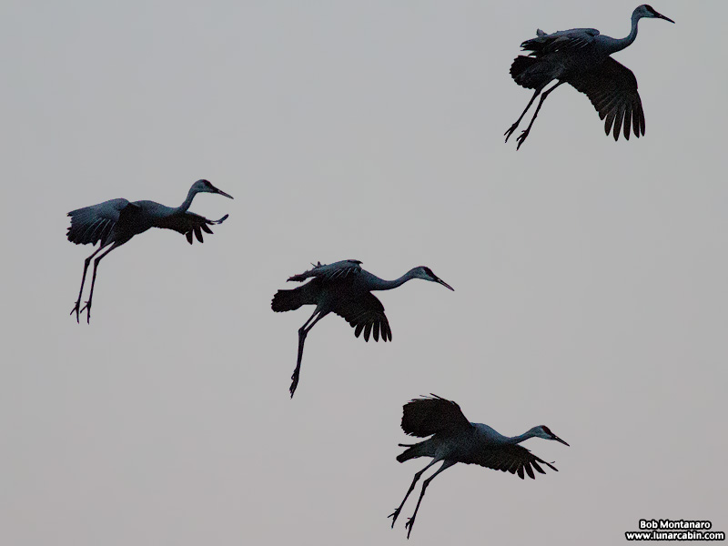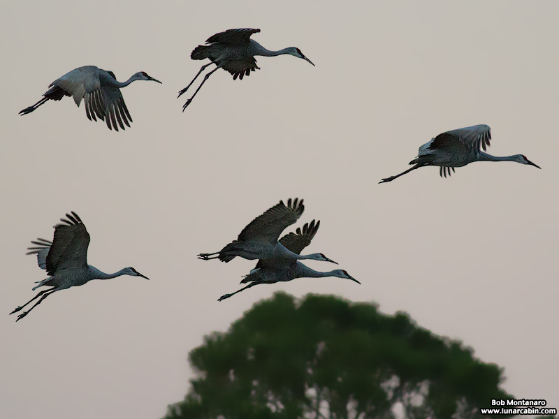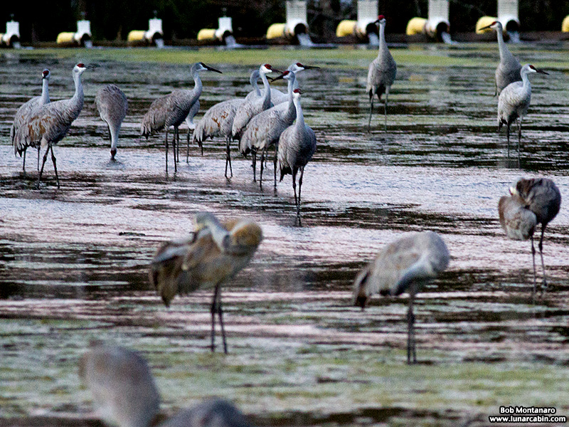 With darkness falling, the Sandhill Cranes settle in for the night.