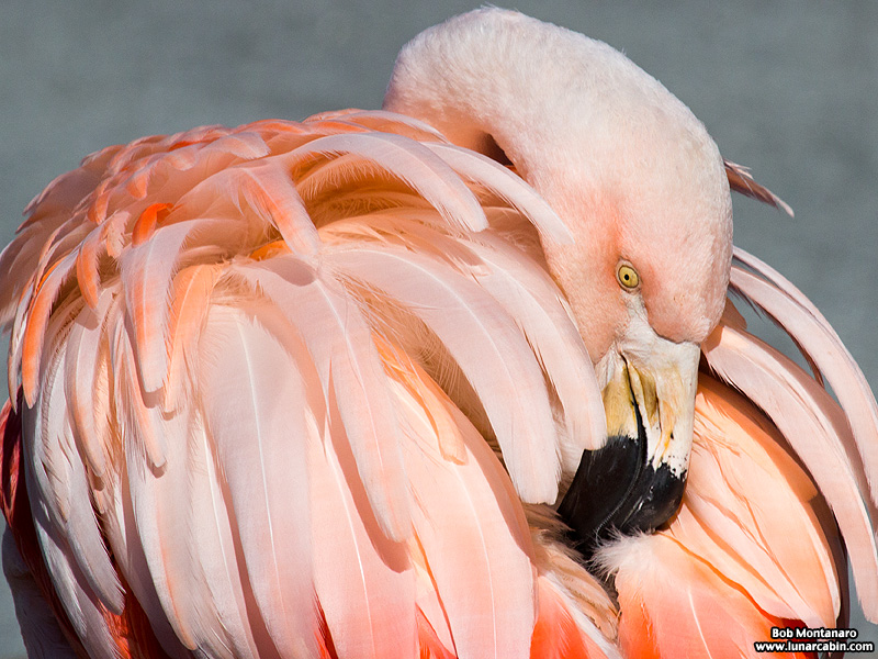 The Chilean Flamingo is a native of South America. The flamingo’s color comes from their diet of algae, diatoms, and aquatic invertebrates such as crustaceans and mollusks from which they absorb the carotenoid pigments that turn their feathers pink.