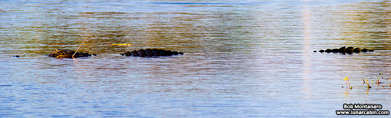 A very large and long Alligator floats menacingly in the water at Egret Marsh Stormwater Park during a late afternoon visit.