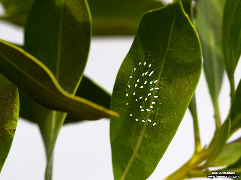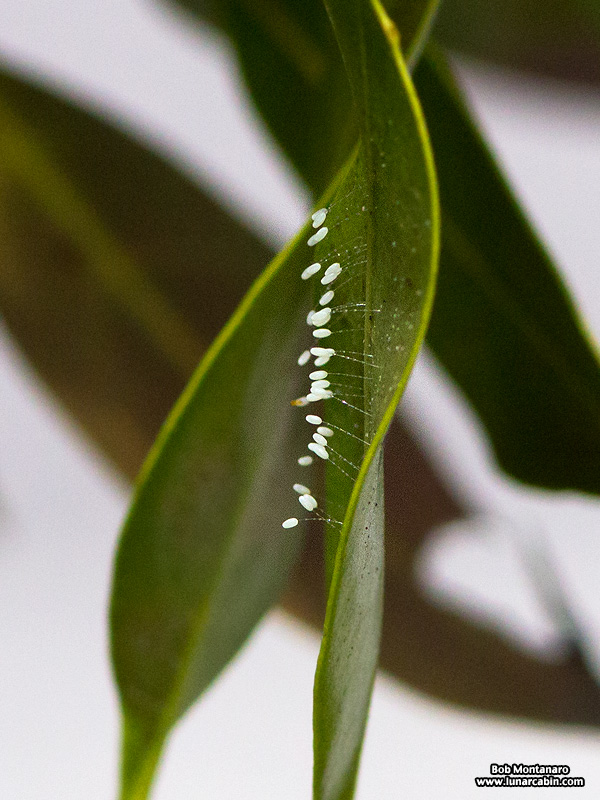 A cluster of eggs at the ends of stalks are the hallmark of a lacewing insect. Once hatched out, the larvae are intense predators of other insects, the adults not so much.