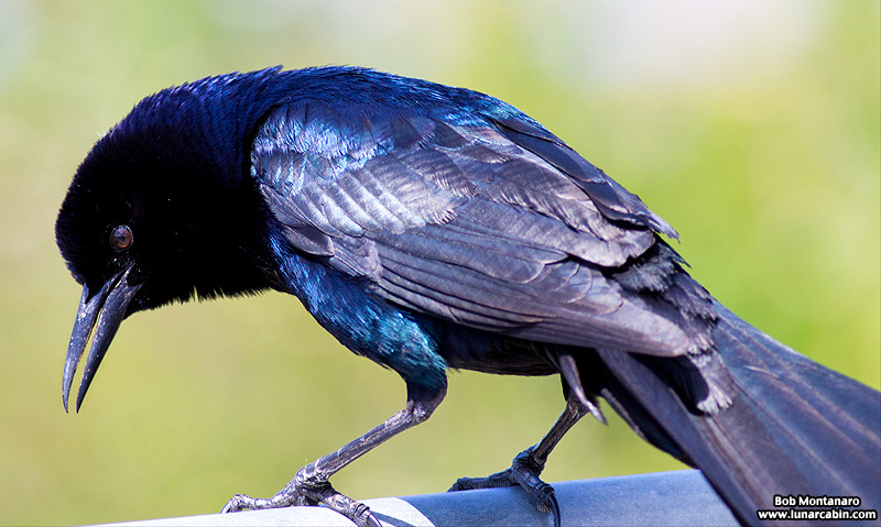 Black? Blue? A male Boat-tailed Grackle can look quite different depending on how the light hits it. A shimmering blue in this case that might look all black if the lighting was a bit different.