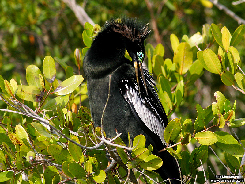 A preening male Anhinga resplendent in his breeding plumage at Merritt Island National Wildlife Refuge.