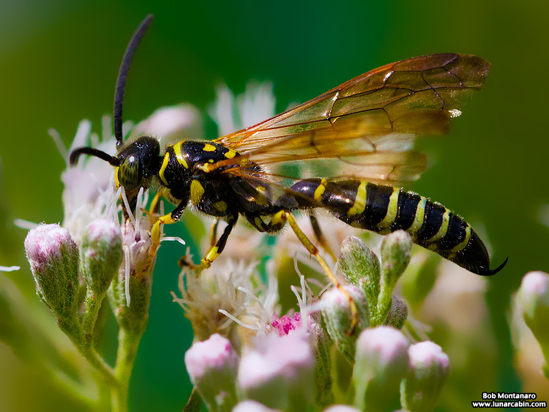 A Scarab Hunter Wasp or, more properly, a Five-banded Tiphiid Wasp. The adults eat flower nectar but their larvae dine on the paralyzed bodies of scarab beetle larvae courtesy of the gruesome prospecting of the female Tiphiid Wasp who seeks out the unlucky scarab larvae in their underground nurseries.