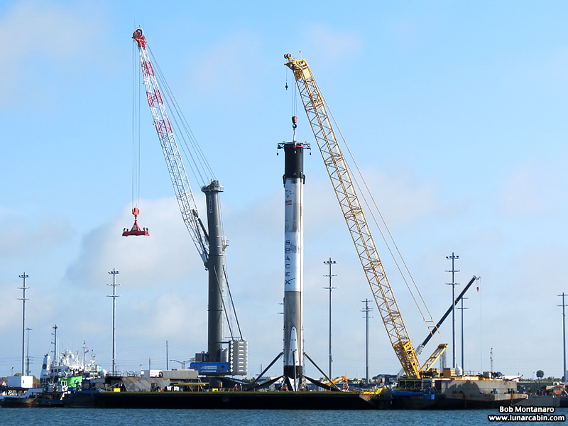 The CRS-17 Falcon 9 booster, still atop the Of Course I Still Love You droneship, is being prepared to be lifted off by crane and onto shore on 5 May 2017. The booster and droneship arrived back in Port late in the afternoon on 4 May from its position just offshore for the booster landing. Click to view more images.